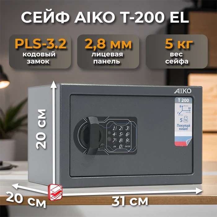 Мебельный сейф AIKO T-200 EL — надежное и удобное решение для хранения документов, ценностей и личного огнестрельного оружия. Этот компактный сейф с электронным кодовым замком обеспечит высокий уровень безопасности и удобство эксплуатации.