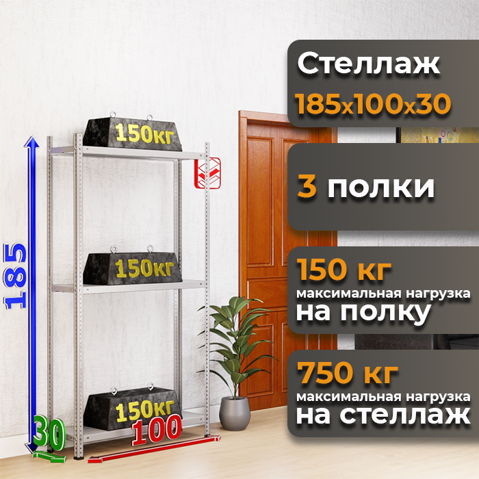 Стеллаж металлический 185х100х30 серии MS Strong — это идеальное решение для организации хранения на складе, в гараже или мастерской. Компактные размеры и высокая грузоподъемность делают его универсальным выбором для размещения тяжелых предметов.
