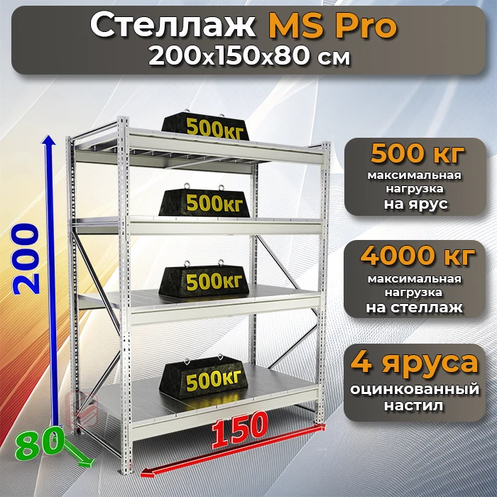 Прочный и надежный металлический стеллаж MS Pro – идеальное решение для гаража, склада, кладовой или торговой точки. Позволяет удобно организовать хранение инструментов, запчастей, коробок и других грузов.